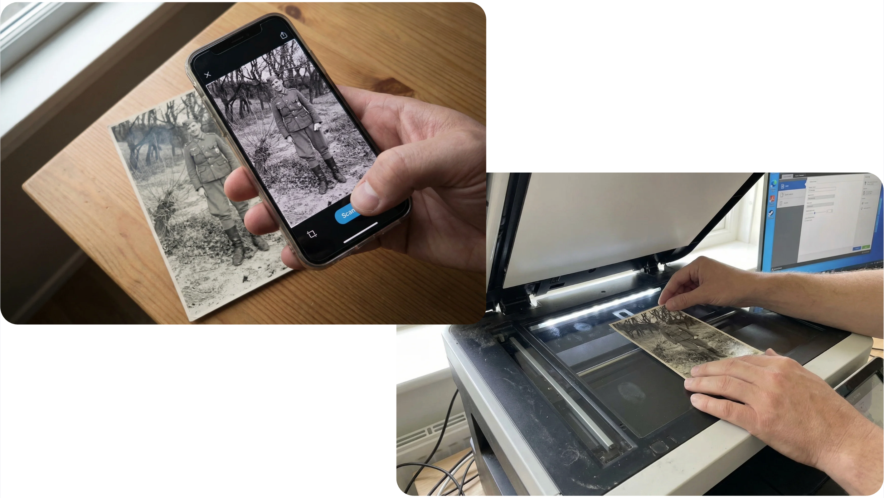 Wenn dein Wunschbild noch in einem Fotoalbum ruht, dann scanne es einfach per Handy oder Drucker ein. Für die beste Qualität empfehlen wir den Drucker.